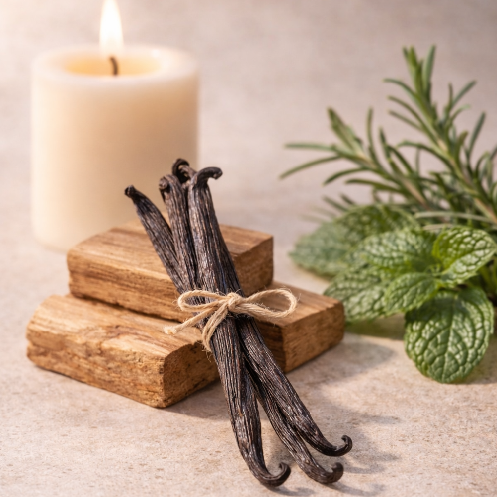 Belebende Frische von Pfefferminze und Rosmarin, harmonisch abgerundet durch eine warme, sanfte Vanille-Sandelholz-Basis.